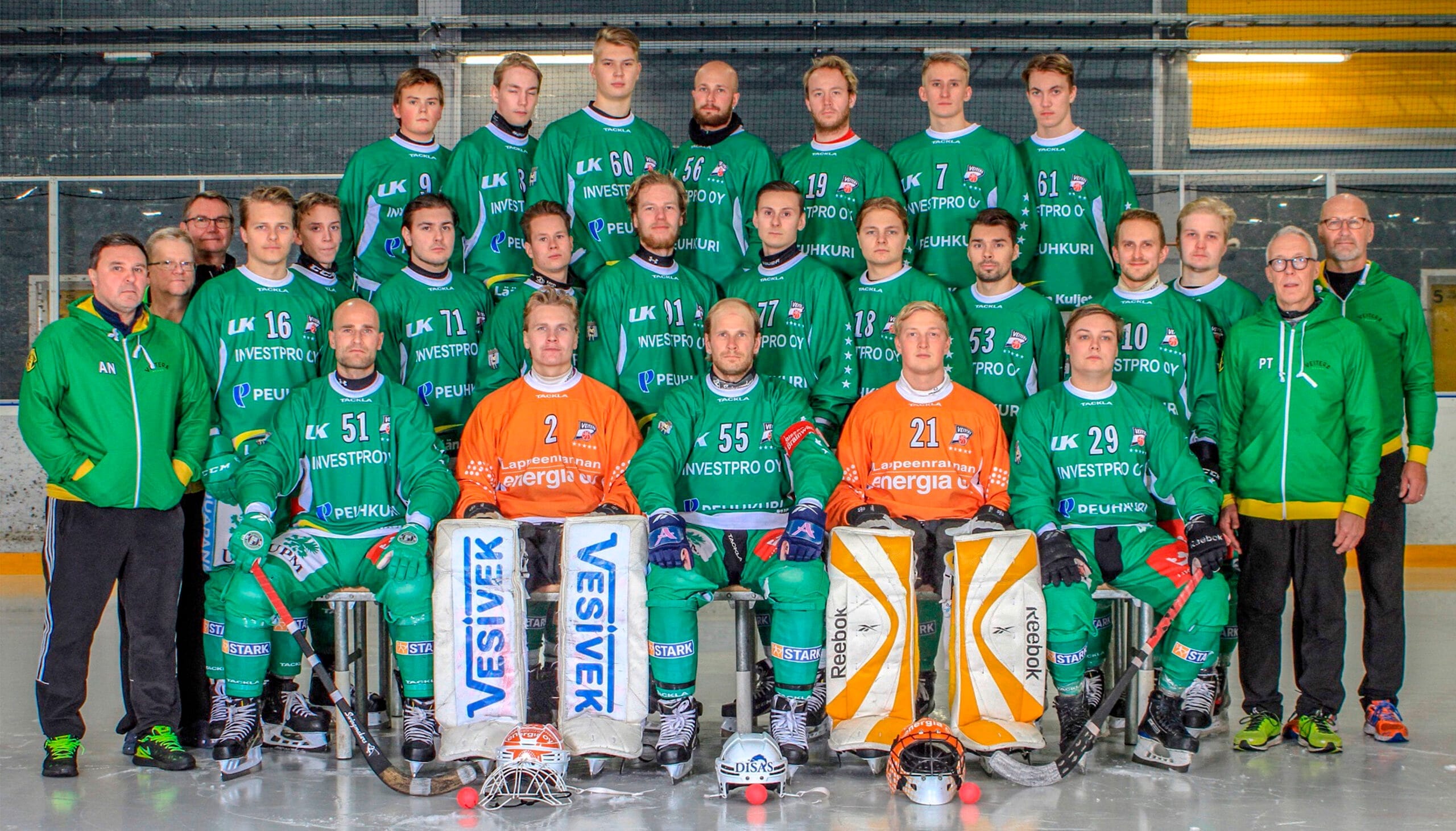 Keskirivi: Aleksei Nikisov, Jukka Pukki, Risto Kangas, #16 Santtu Nurmi, #74 Veeti Tapanainen, #71 Tuukka Loikkanen, #72 Tero Liimatainen, #91 Ere Verhelä, #77 Aleksi Seppänen, #18 Johan Segerman, #53 Juuso Kärmeniemi, #10 Antti-Juuso Ropo, Joonas Ylä-Outinen, Pekka Tujula ja Ilkka Hauska