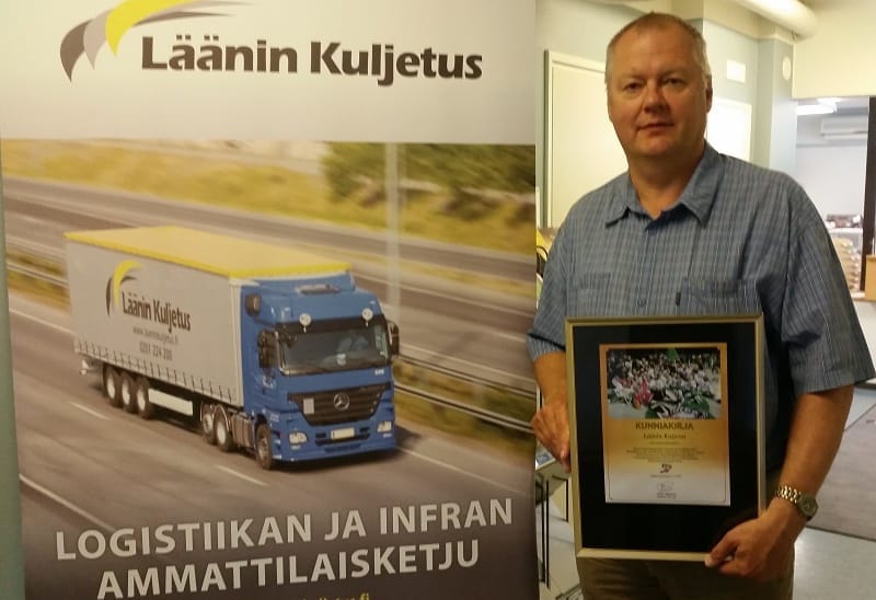 Läänin Kuljetus Oy:n toimitusjohtaja Petri Siivo vastaanotti Veiterän SM-kultadiplomin kiitoksena hyvästä yhteistyöstä. Läänin Kuljetus toimii mm. Lappeenrannassa, Lahdessa, Porissa, Salossa, Sastamalassa, Tampereella ja Turussa.
