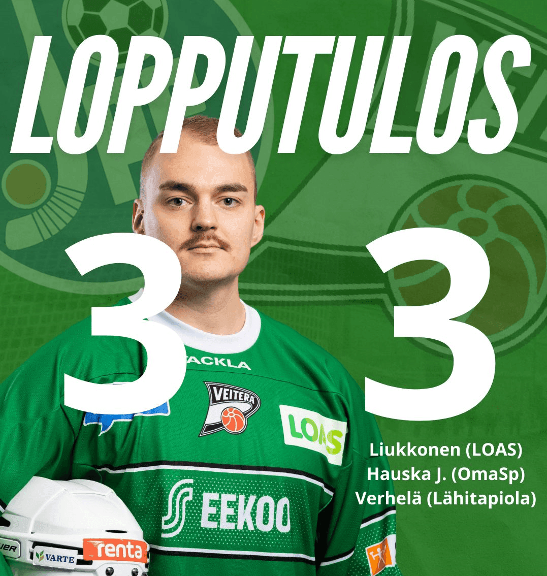 Ja vain kolme minuuttia tästä, niin Veiterän 8. kulmuri tuotti tasoituksen: Tomi Hauska lähetti pallon kolmospaikalle, josta kippari Ere Verhelä (LähiTapiola) iski suoraan pallon maaliin: 3-3.