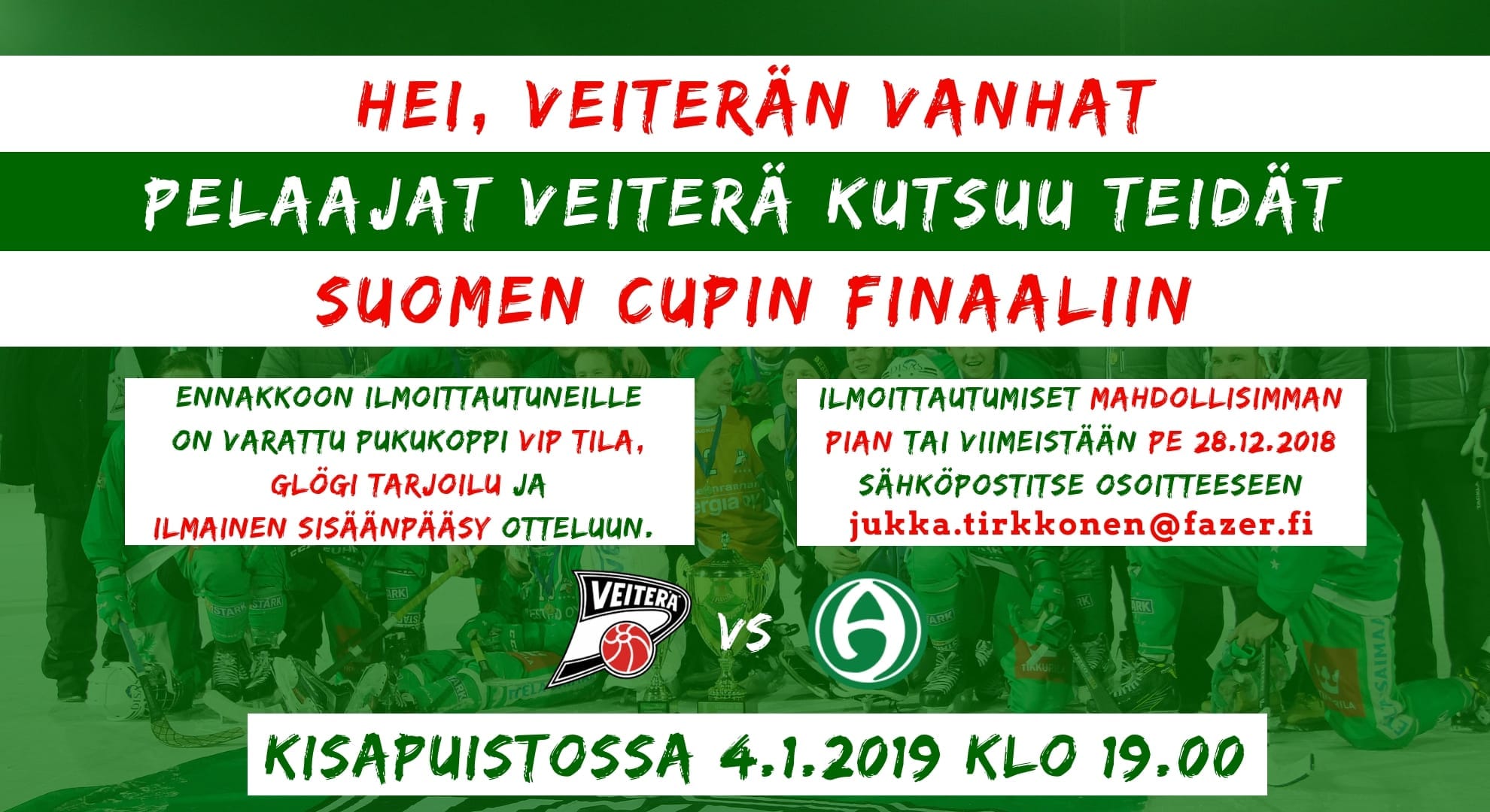 Veiterä kutsuu teidät perjantaina 4.1.2019 pelattavaan Suomen Cupin Finaaliin.